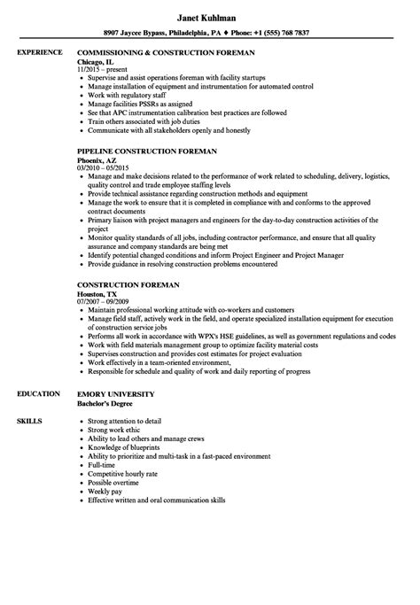 Construction Foreman Resume - Learn how to write a resume that. Construction foreman resume samples and examples of curated bullet points for your resume to help you get an interview. Construction foremen supervise and guide workers on construction sites. Our resume builder will help you write a custom construction foreman resume in 15 minutes! However, if you want to give your.